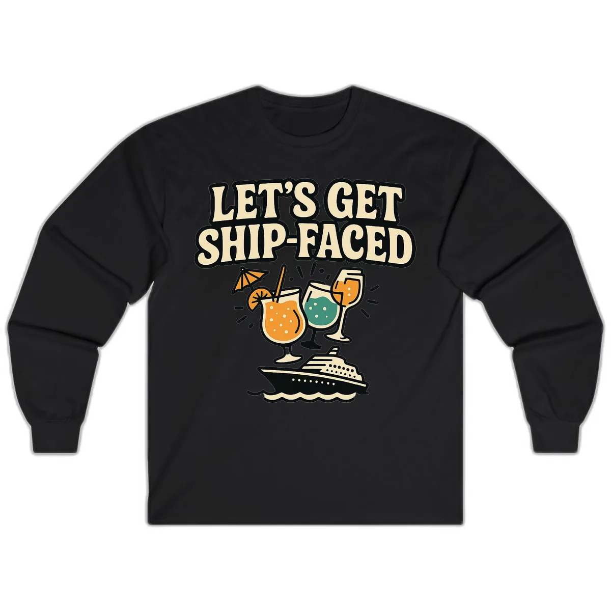 Embrace the spirit of adventure with the 'Let's Get Ship-Faced' Long Sleeve Tee. This versatile shirt is perfect for those cooler days or evenings on your cruise, offering both comfort and a dash of playful style. The eye-catching retro design, complete with festive cocktails and a cruise ship, is sure to be a conversation starter as you sail the seas.