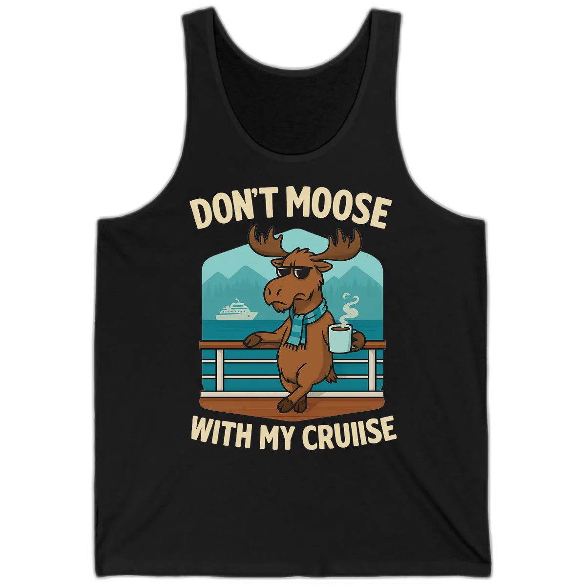 Stay cool and crack up your fellow cruisers with the "Don't Moose With My Cruise" Tank Top! This design features a supremely relaxed moose, sunglasses firmly in place and coffee mug at the ready, embodying that perfect vacation chill. It’s the ultimate way to show off your fun-loving spirit and your love for Alaska, designed for maximum comfort on sunny decks and warm port days. Get ready for a vacation vibe that's un-moose-tably good!