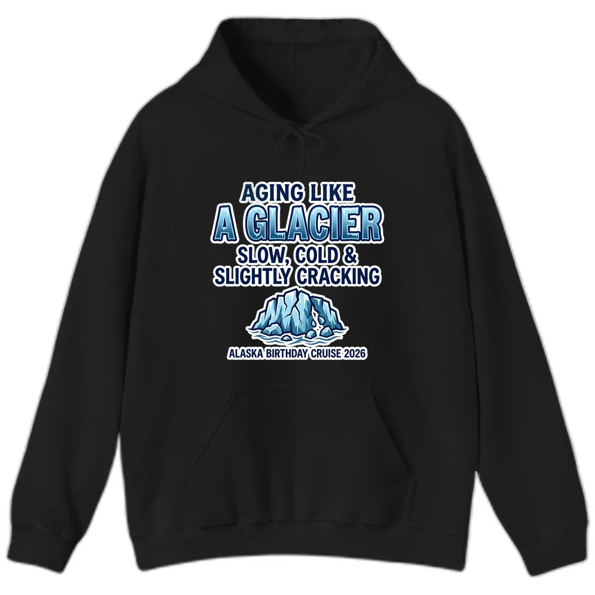 Celebrate your birthday cruise in ultimate comfort and style with this "Aging Like A Glacier" hoodie. Designed for laughter and warmth, this hoodie is perfect for embracing the Alaskan chill while commemorating another year with a hilarious twist. It’s the coziest way to remember your special voyage!