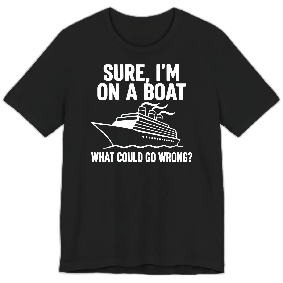 This premium tee offers superior softness and comfort, making it an upgrade for your cruise wear. The hilarious 'Sure I'm On A Boat What Could Go Wrong' design remains the same, but the feel is exceptionally luxurious.
