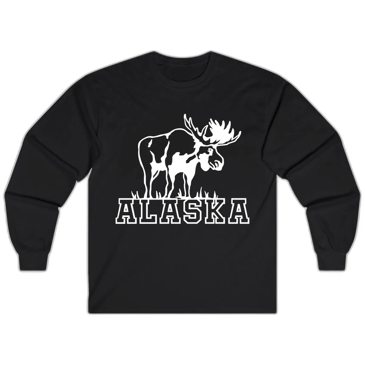 The design looks fantastic on the long sleeve! The white moose silhouette and 'ALASKA' text stand out clearly, and the sleeves provide additional canvas for comfortable, stylish coverage.