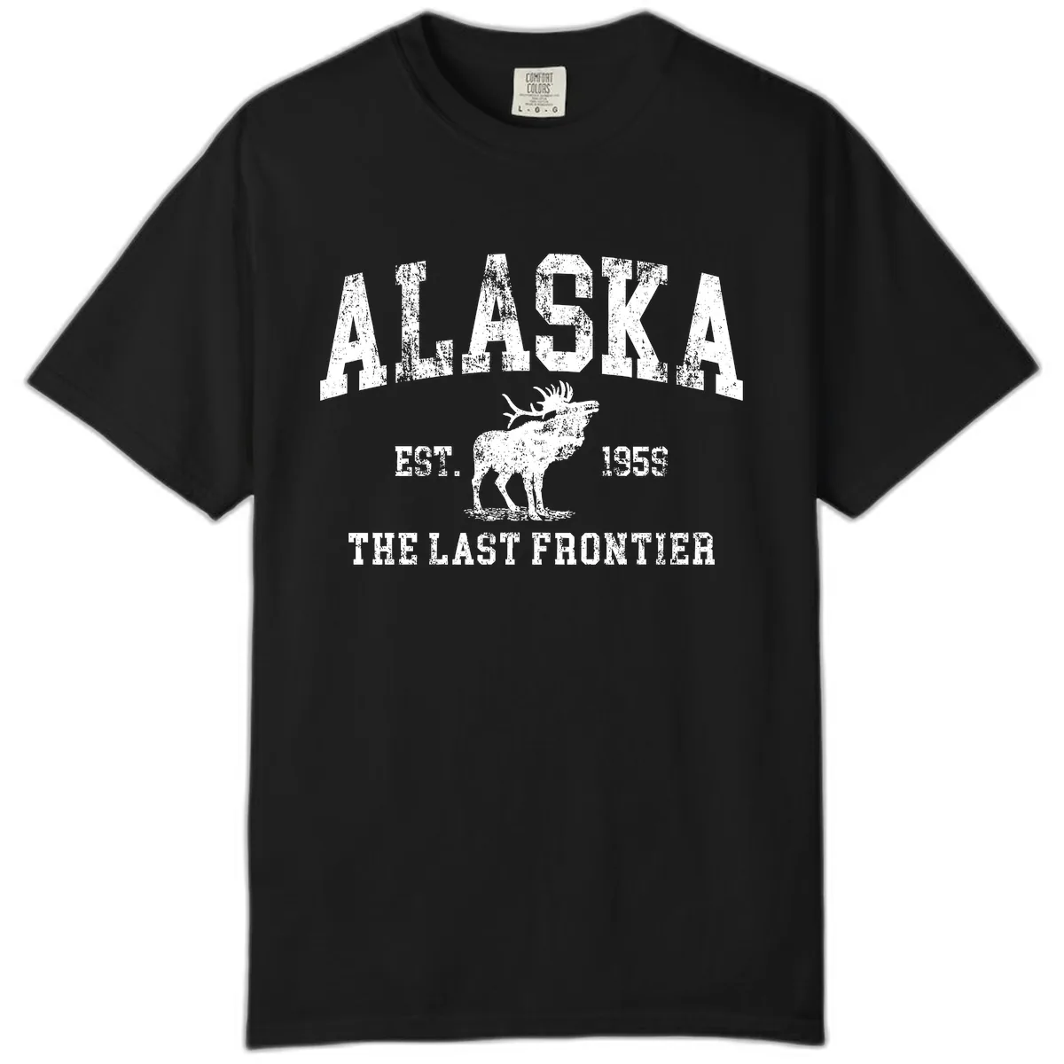 - ✓ 'ALASKA EST. 1959 THE LAST FRONTIER' bold lettering.