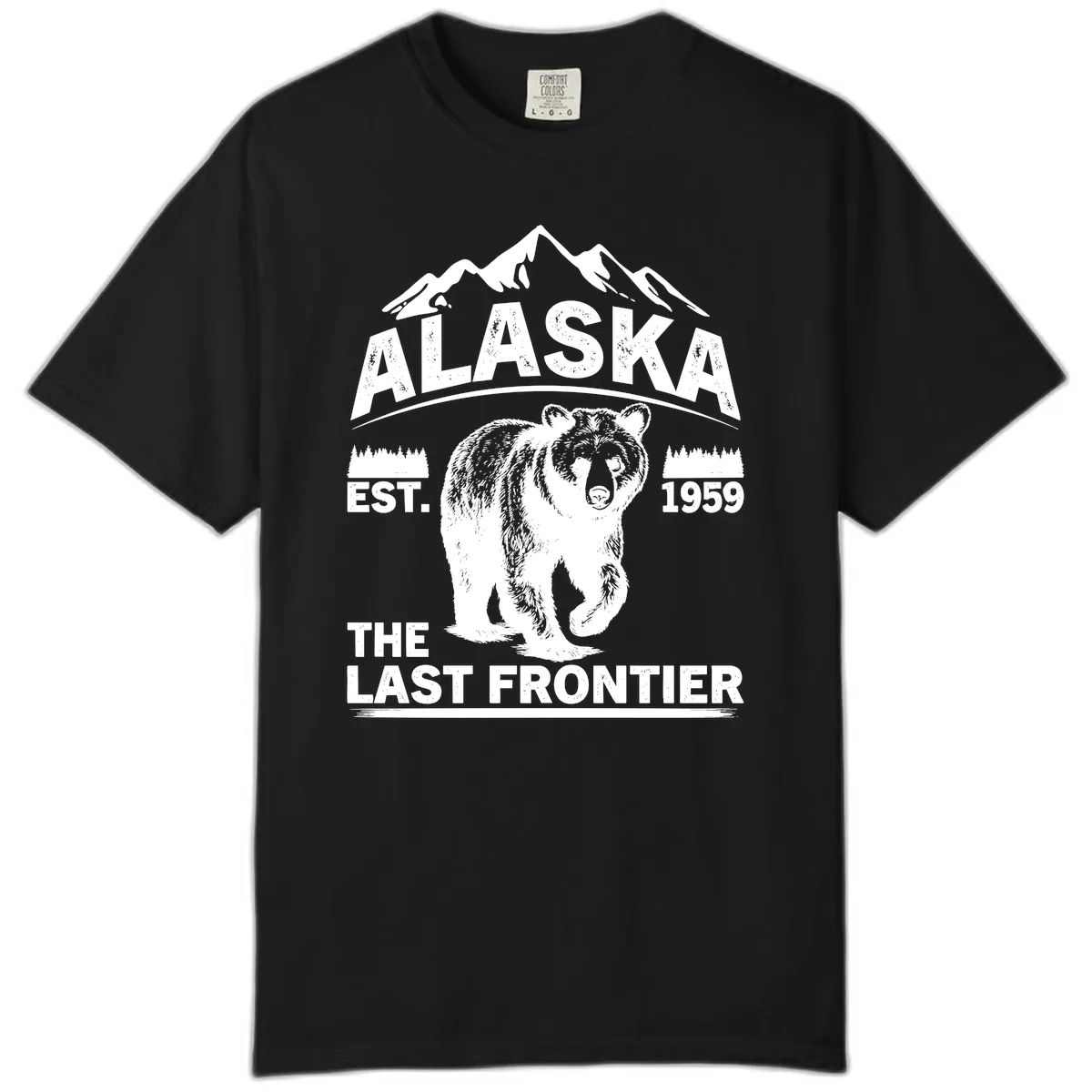 - ✓ Distressed text "ALASKA EST. 1959 THE LAST FRONTIER" adds vintage flair.