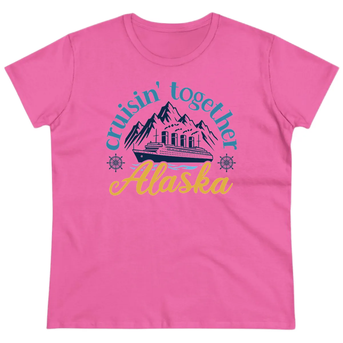 We launched Alaska Cruise Tees because we were tired of boring cruise shirts! After our own Alaska trip, we wanted something fun and memorable. The "Cruisin Together Alaska" design is all about celebrating those amazing family moments. We created this specific ladies' cut because we believe everyone should have a cruise shirt that fits and flatters, making your vacation photos look even better!