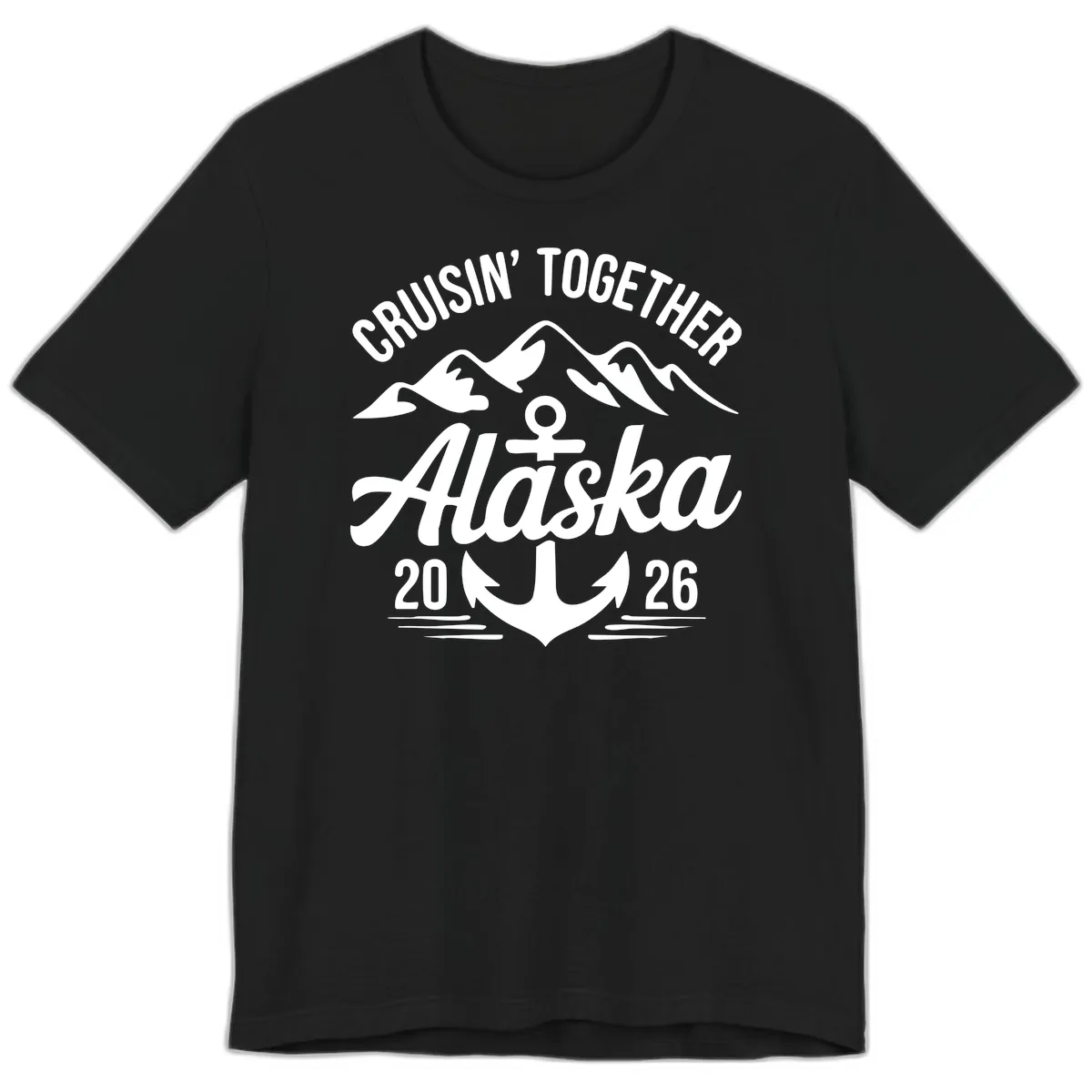 Sail into adventure with the "Cruisin' Together Alaska 2026" Premium T-Shirt! This tee is designed for those who appreciate a little extra comfort and style on their epic Alaskan voyage. Featuring the "Cruisin' Together Alaska 2026" message, a striking anchor, and scenic Alaskan elements, it’s the ultimate statement piece for your group.