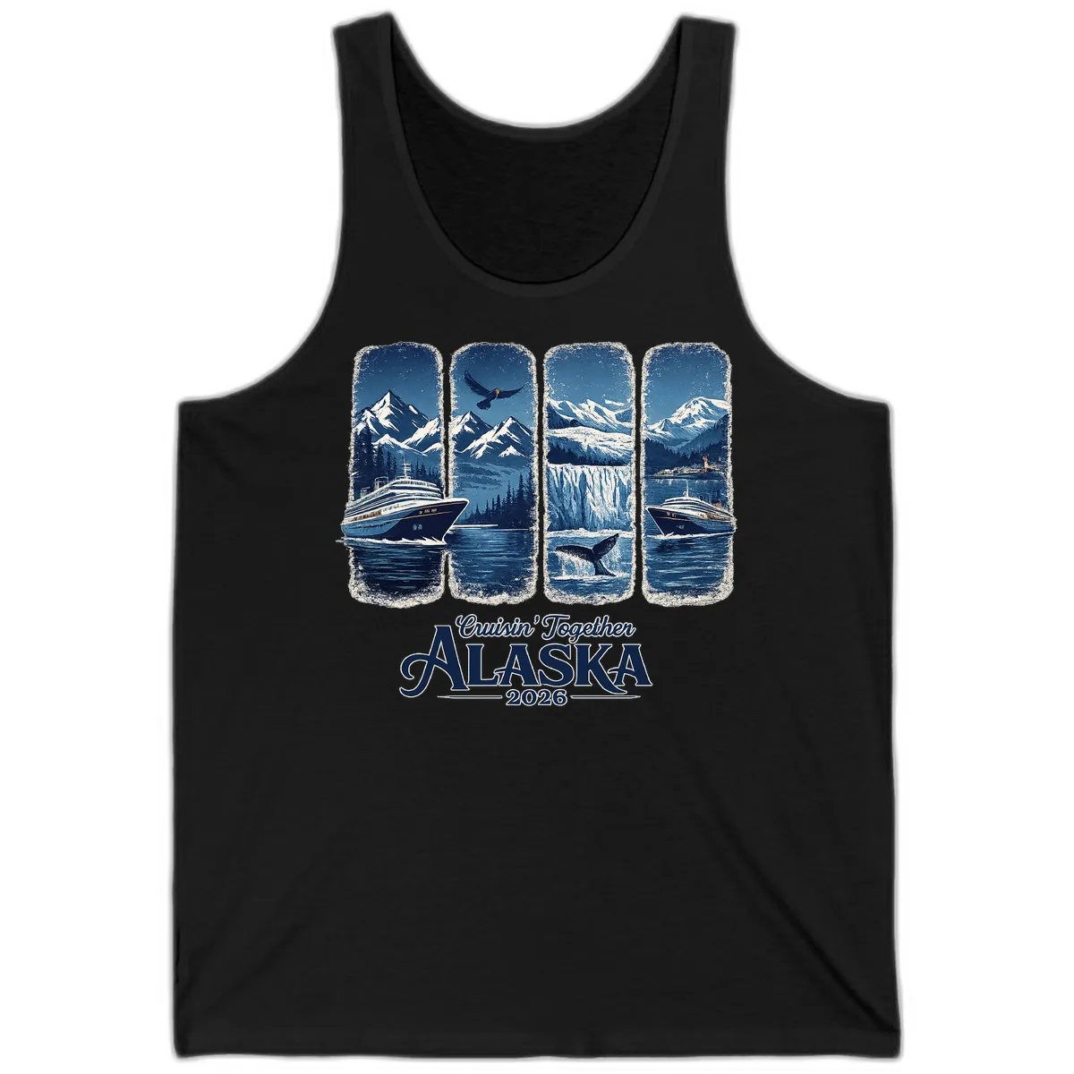 Embrace the warmth and beauty of your Alaskan cruise with this breezy tank top! Designed for sunny days on deck or exploring vibrant ports, the "Alaskan Cruise Together" artwork features a stunning collection of scenic panels – think majestic mountains, a dazzling glacier with a whale tail, a soaring eagle, and the iconic cruise ship. "Cruisin' Together ALASKA 2026" proudly declares your shared adventure in this perfect group matching piece!