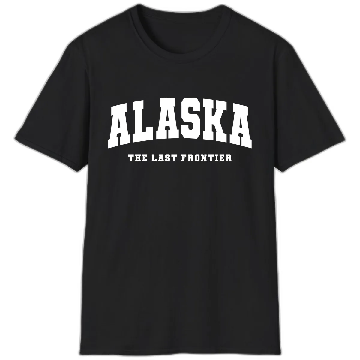 Ready to show off your love for America's Last Frontier? This "Alaska The Last Frontier Bold Text" t-shirt is your ticket to effortless style and undeniable pride. Featuring bold white block letters against a classic black background, it’s the perfect way to commemorate your Alaskan adventure.