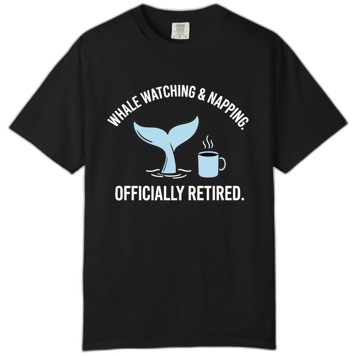 How does the 'Whale Watching And Napping Officially Retired' design look on Comfort Colors?
