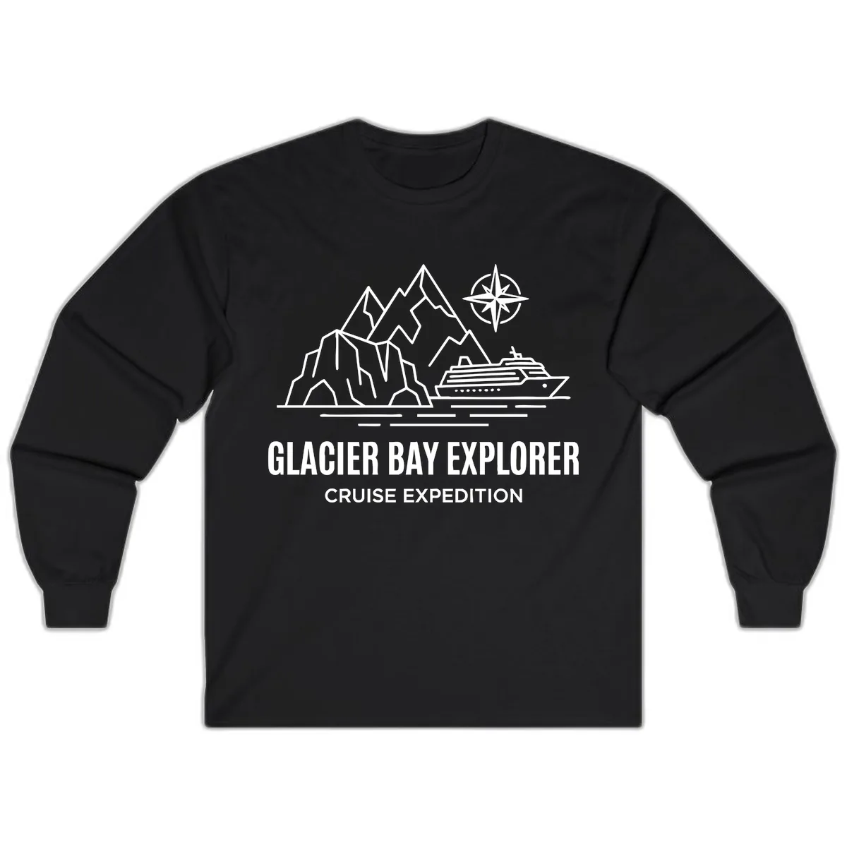 Set sail on an unforgettable journey with this Glacier Bay Explorer design, perfect for your Alaskan adventure! Capture the spirit of your cruise expedition with this long sleeve tee featuring majestic mountains, breathtaking glaciers, and your ship navigating the icy waters. It's a must-have for every Alaska cruise enthusiast looking to navigate the wonders of Glacier Bay in style.