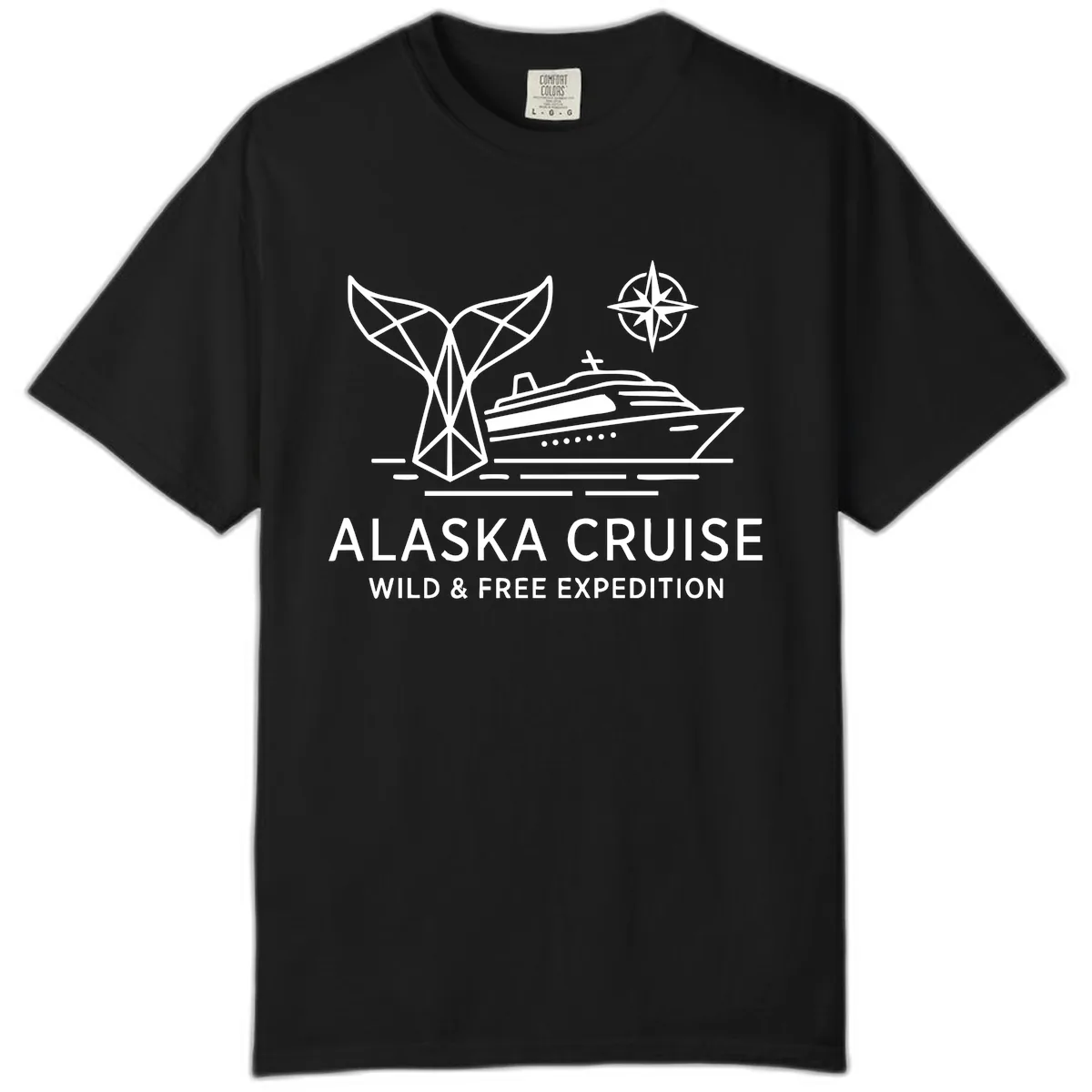 Embrace the spirit of adventure with our "Alaska Wild & Free Expedition Cruise" Comfort Colors tee! This design is perfect for capturing the essence of your Alaskan journey, featuring a cool white line art graphic of a geometric whale tail, a stylized cruise ship, and a classic compass rose. It’s the ultimate way to remember your expedition cruise and the wild beauty of Alaska.