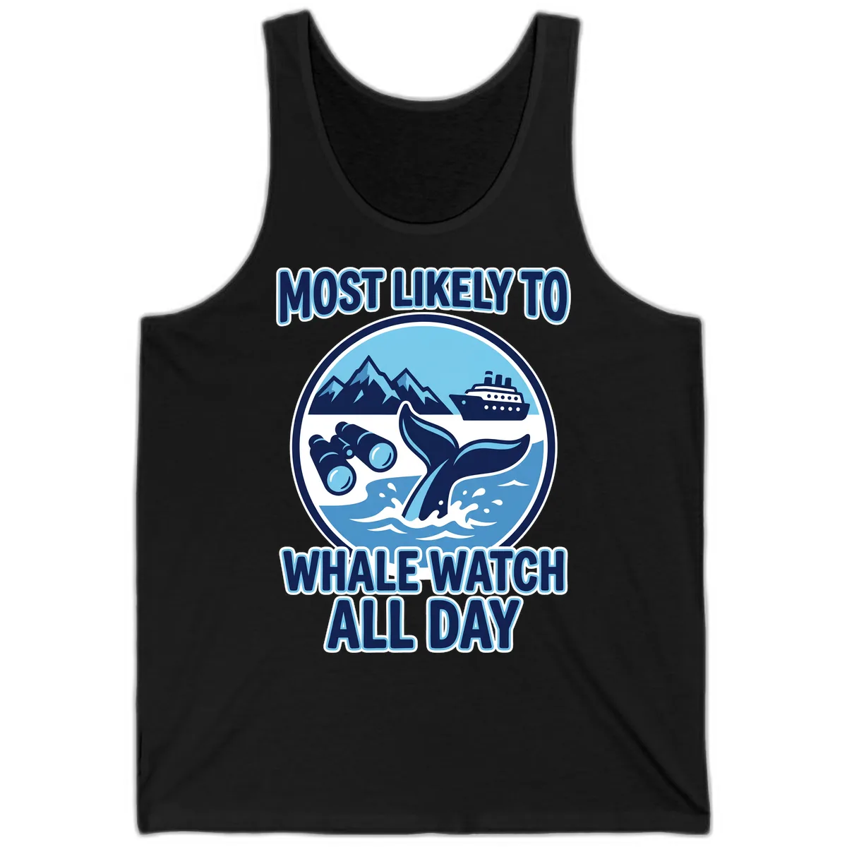 How does the 'Most Likely To Whale Watch All Day' design look on a tank top?