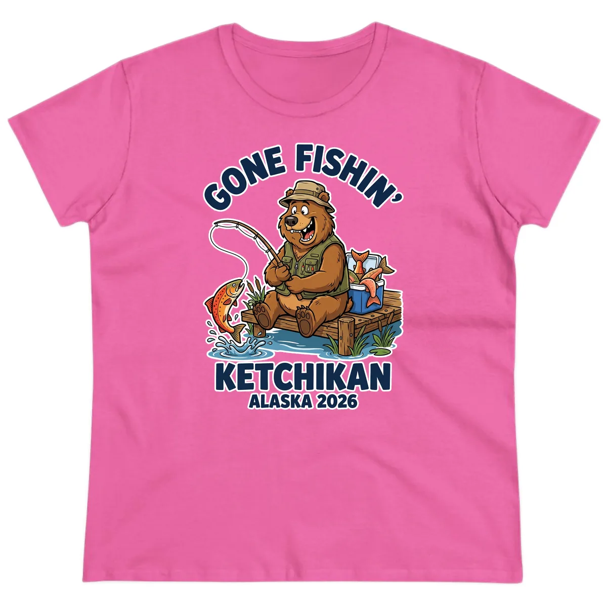 Cast Off in Style with the Gone Fishin' Ketchikan Alaska Bear Fishing Ladies Tee