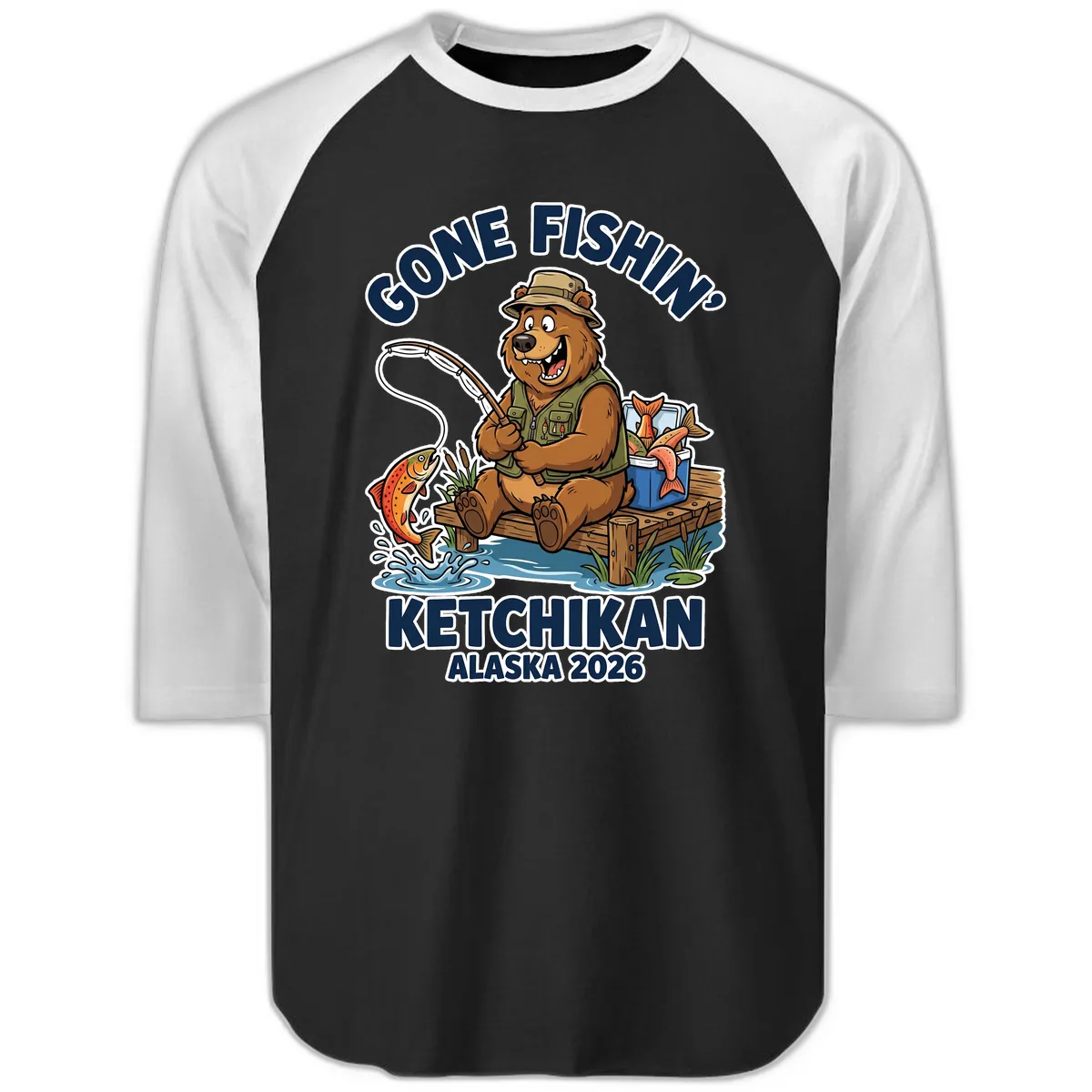 Gone Fishin' Ketchikan Alaska Bear Fishing Raglan 3/4