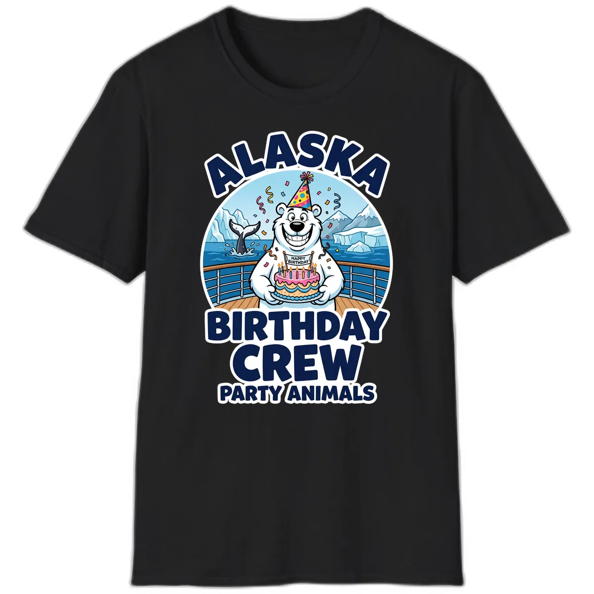- ✓ "Alaska Birthday Crew Party Animals" text is bold and festive.