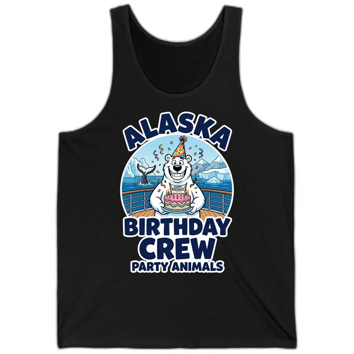 Celebrate your birthday in sunny style on your Alaska cruise with the "Alaska Birthday Crew Party Animals" Tank Top! This breezy tank features our fun design with a jubilant polar bear, a festive cake, and iconic Alaskan scenery, perfect for warmer days on deck. It’s the ideal way for your "Birthday Crew" to stay cool and festive as you sail through breathtaking landscapes.