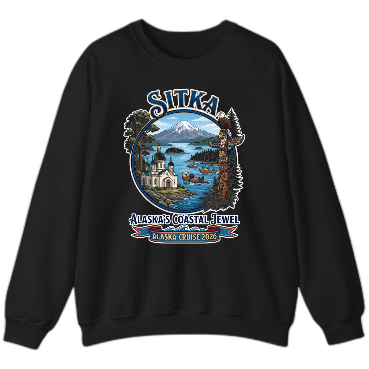 Embrace the spirit of your 2026 Alaska cruise with our "Sitka Alaska's Coastal Jewel" Crewneck Sweatshirt! This cozy sweatshirt features a stunning, detailed badge design that celebrates the unique beauty and rich history of Sitka. It's the perfect way to stay warm while reminiscing about your incredible journey through Southeast Alaska, whether you're on deck or back home.