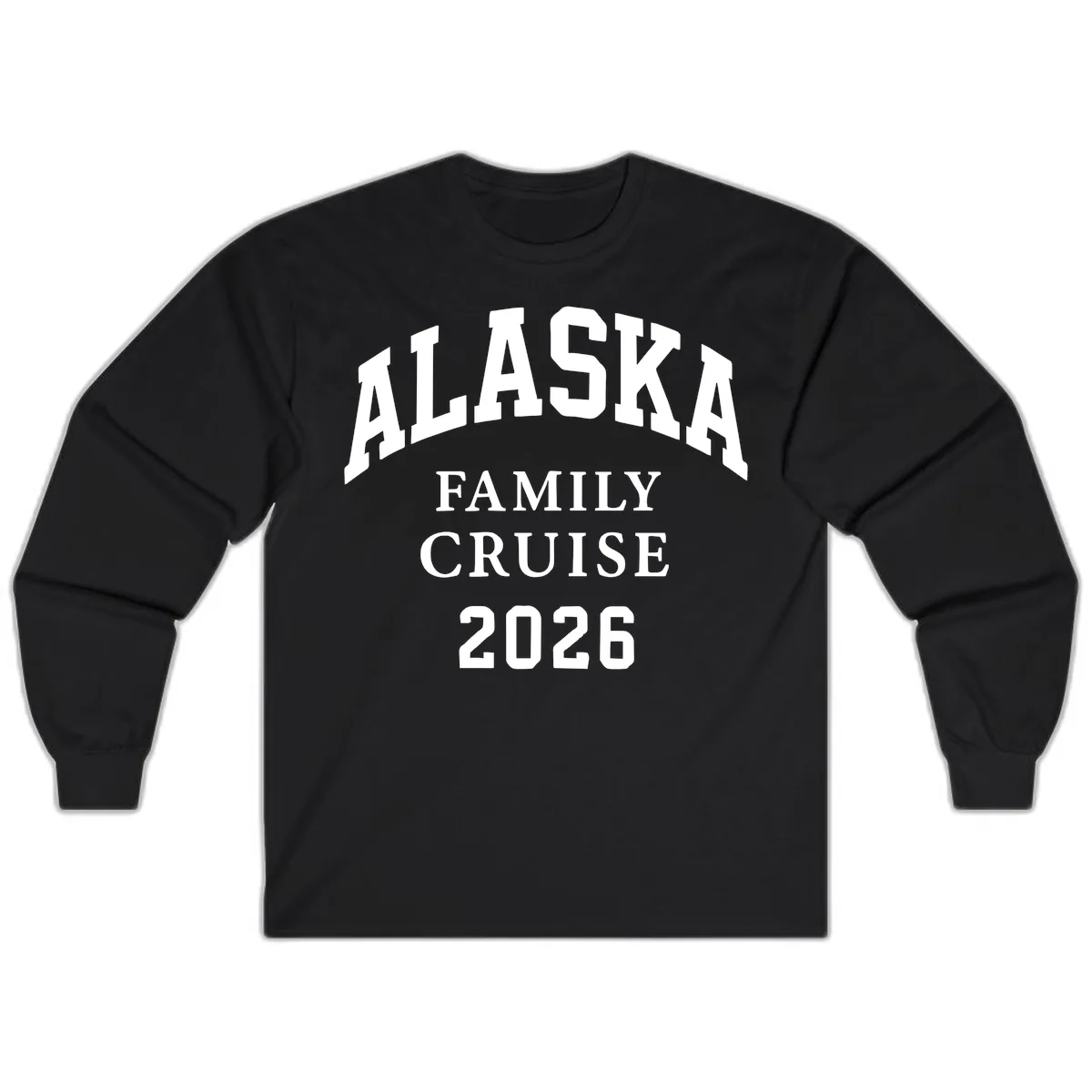 Prepare for the crisp Alaskan air with our "Alaska Family Cruise 2026" Long Sleeve shirt. This design features bold, arched white lettering proclaiming "ALASKA FAMILY CRUISE 2026" against a versatile gray background. It’s the perfect blend of commemorative style and practical comfort for your family's unforgettable voyage.