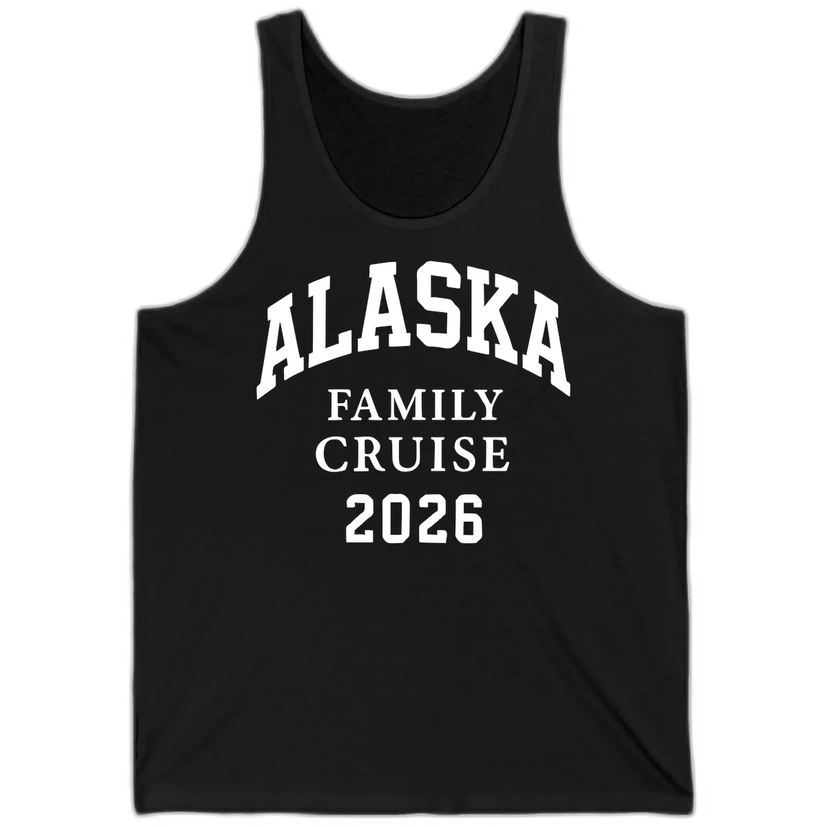 What does the 'ALASKA FAMILY CRUISE 2026' design look like on the tank top?