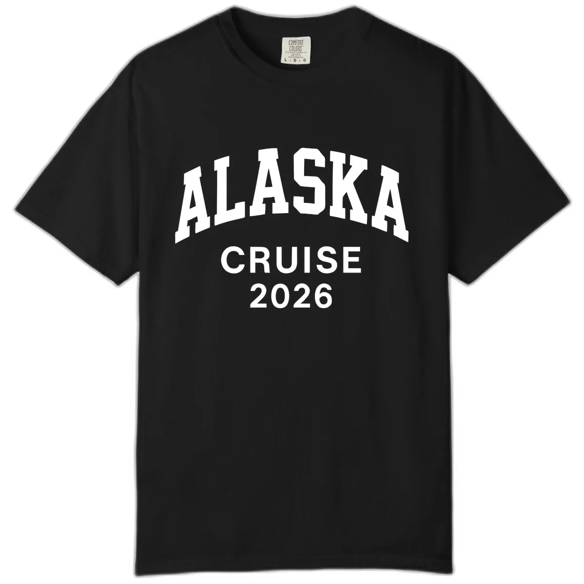 Does the arched text layout of 'ALASKA CRUISE 2026' work well with the Comfort Colors style?