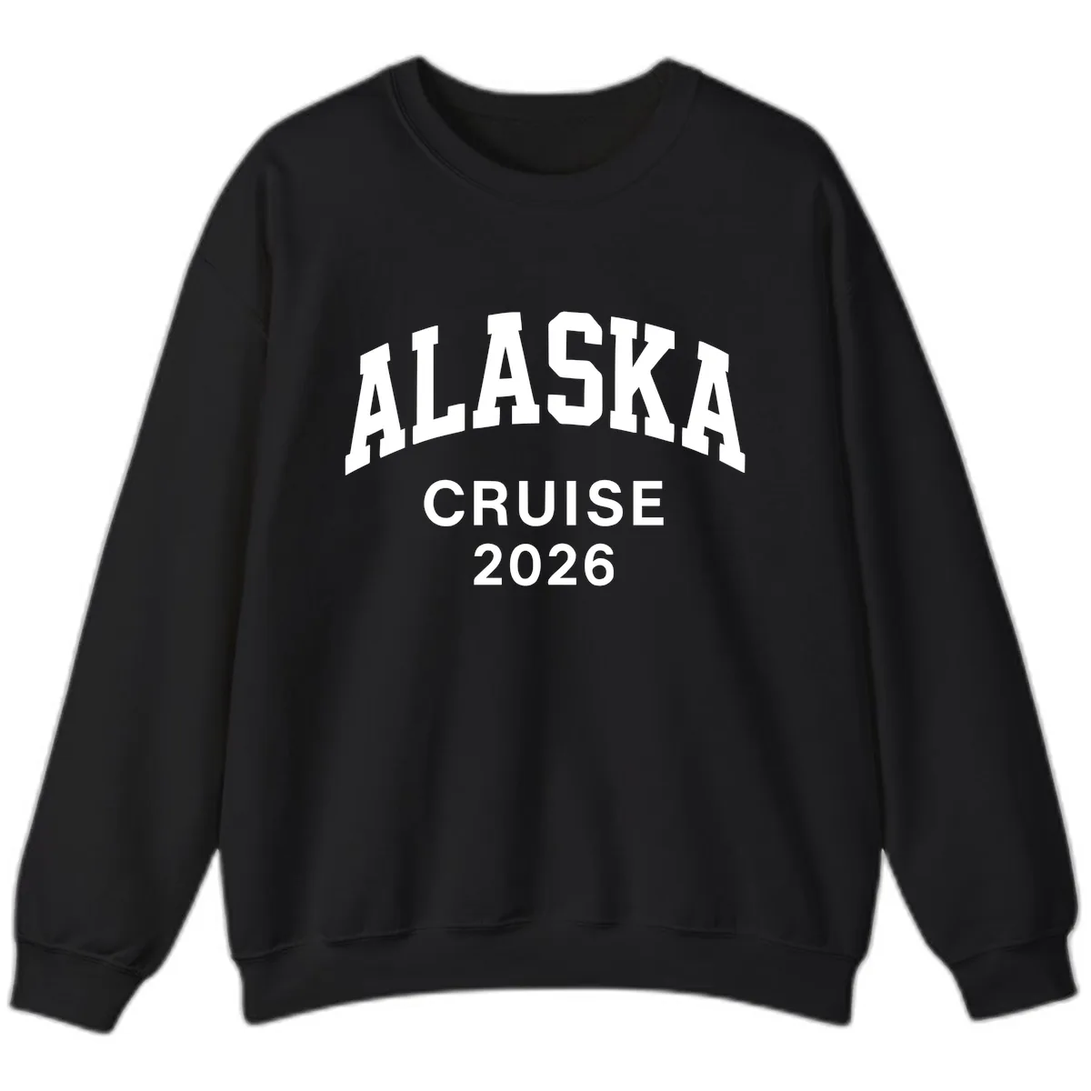 Stay warm and stylish on your 2026 Alaskan journey with this must-have crewneck sweatshirt. Featuring the bold "ALASKA CRUISE 2026" typography in an eye-catching arched design, this sweatshirt is your perfect companion for coordinating with your group and embracing the scenic beauty of the Last Frontier.