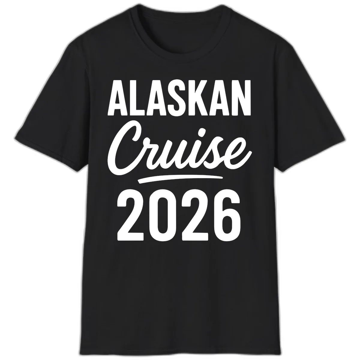 This classic unisex tee features the bold 'Alaskan Cruise 2026' typography design, perfect for commemorating your adventure. It's a comfortable and stylish way to represent your group or cruise year.