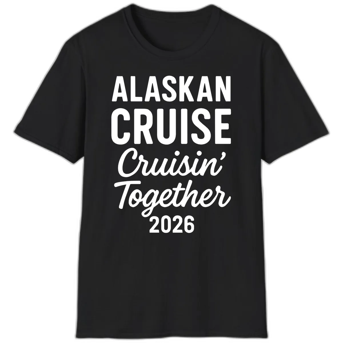 The T-shirt features the exact text 'ALASKAN CRUISE Cruisin' Together 2026'. It's designed to be a fun and memorable souvenir for your group trip.