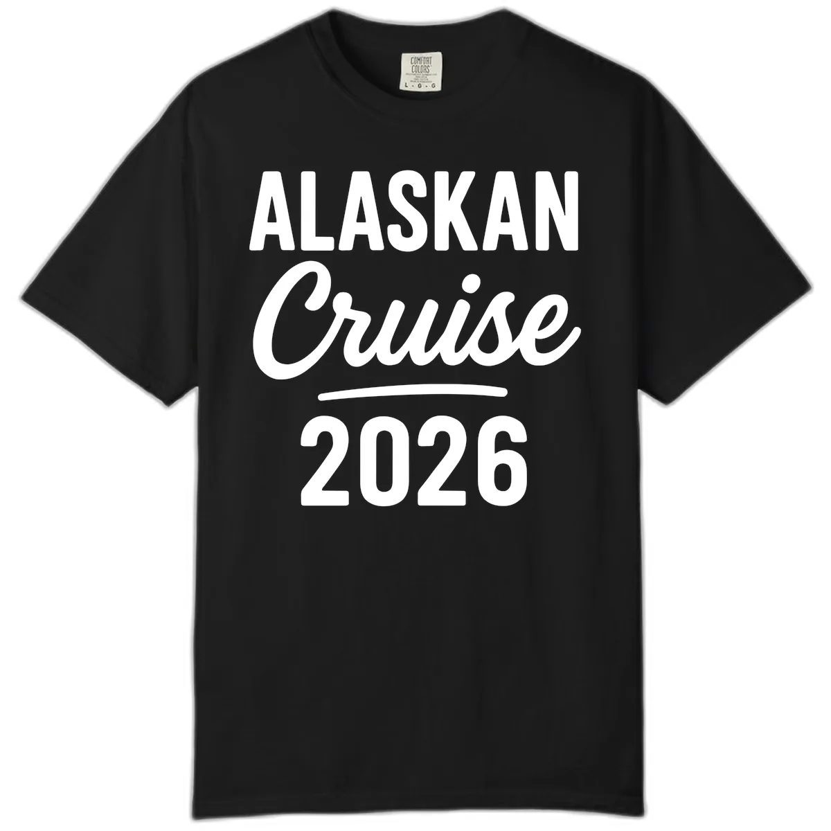 Mark your 2026 Alaska adventure with this bold, timeless cruise design, now on our super-cozy Comfort Colors tee! Featuring "ALASKAN Cruise 2026" in crisp white letters against a classic gray background, complete with a stylish decorative underline, this shirt is perfect for making memories. It's the ultimate comfortable and matching cruise apparel for the whole group, blending iconic style with unmatched coziness.