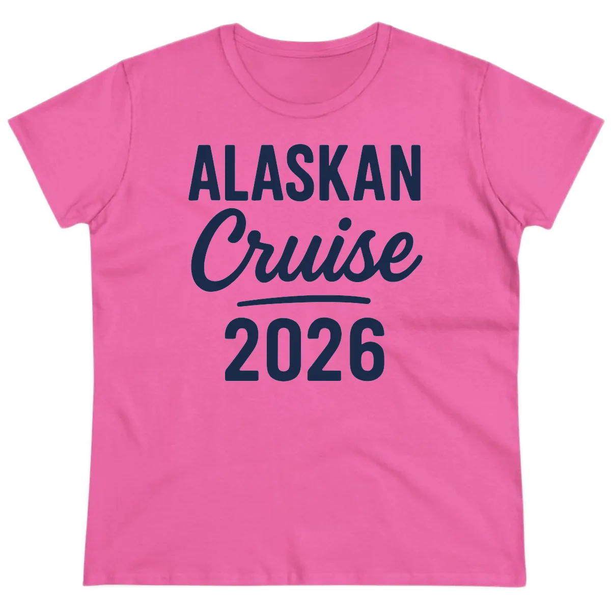 We started Alaska Cruise Tees because we wanted cruise shirts that didn't sacrifice style for fun, especially for the ladies! After our own Alaska trip, we saw a need for better-fitting, more fashionable options. This "ALASKAN Cruise 2026" design on a tailored ladies' tee is our answer—it’s a piece you’ll love wearing, whether you’re sipping cocktails on deck or exploring the rugged beauty of Alaska.
