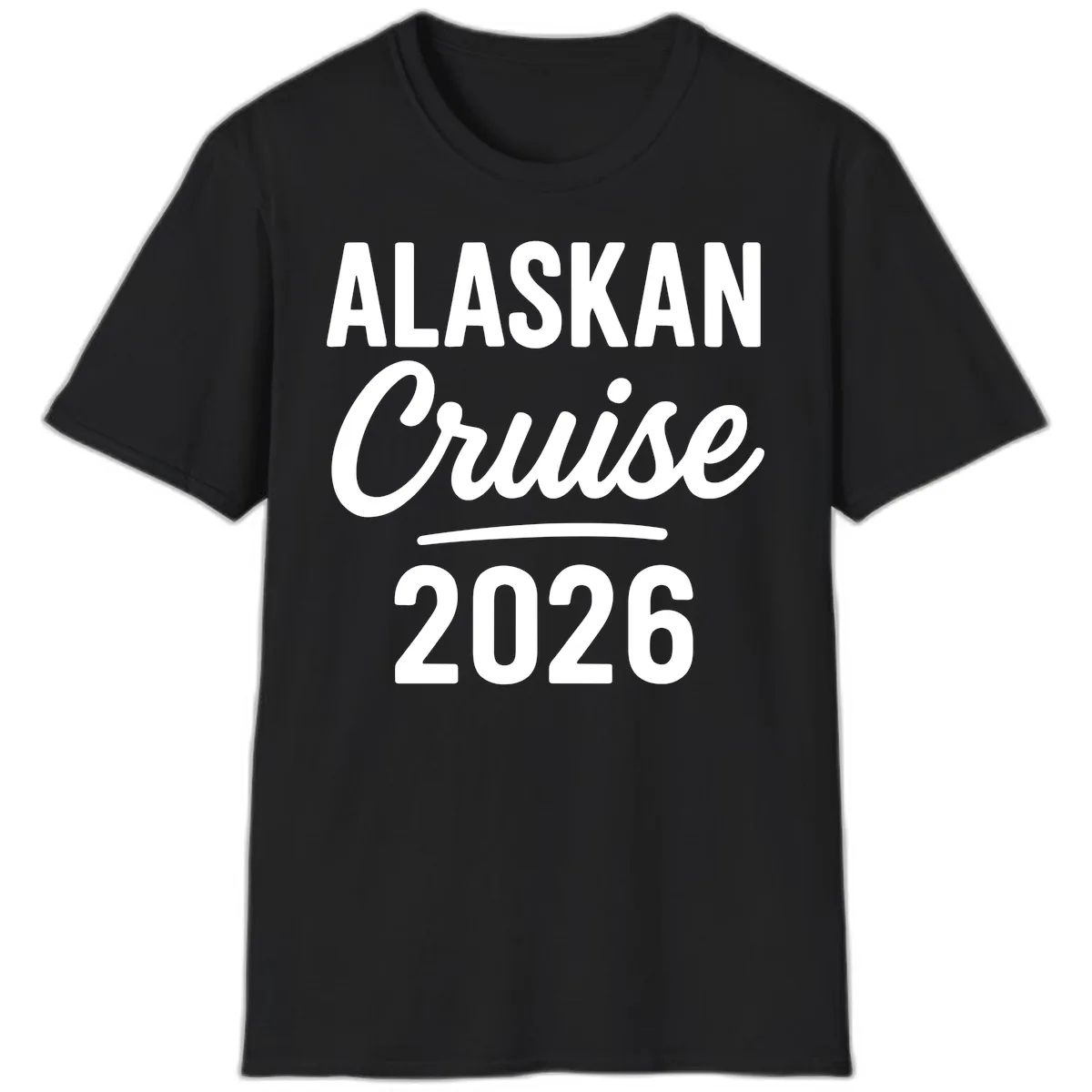 Mark your incredible 2026 Alaska adventure with this bold, timeless design. Featuring "ALASKAN Cruise 2026" in crisp white letters against a cool gray background, accented by a stylish decorative underline, this tee is ready for all your glacier-gazing and whale-watching moments. It’s the perfect blend of classic style and cruise-ready fun.