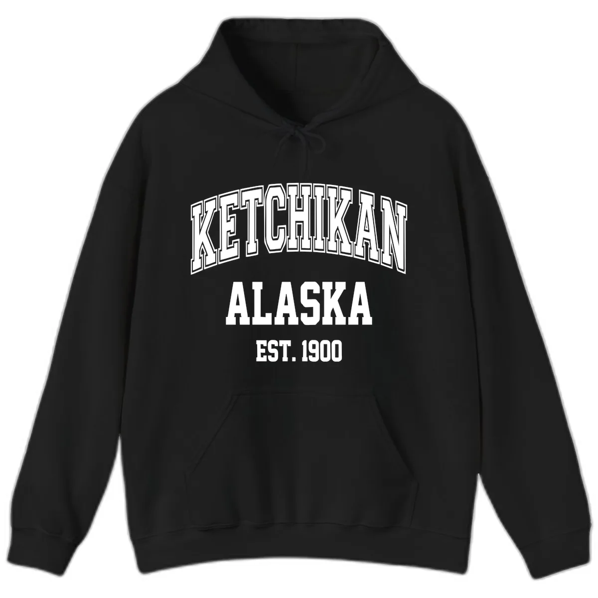 This hoodie makes a memorable souvenir because it combines practicality with a unique design. You'll stay warm and comfortable, and the 'Ketchikan Alaska Est 1900' graphic will always remind you of your incredible cruise adventure.