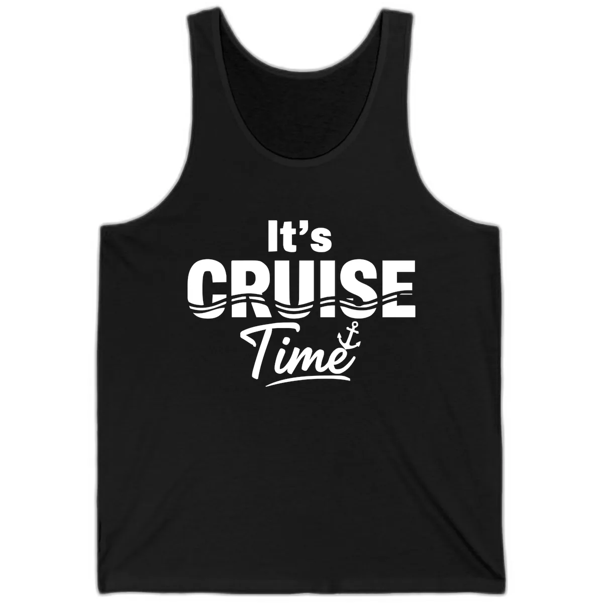 The bold 'It's Cruise Time' typography and nautical accents are printed clearly on the front of the tank. The design is a fun way to showcase your cruise spirit in warm weather.