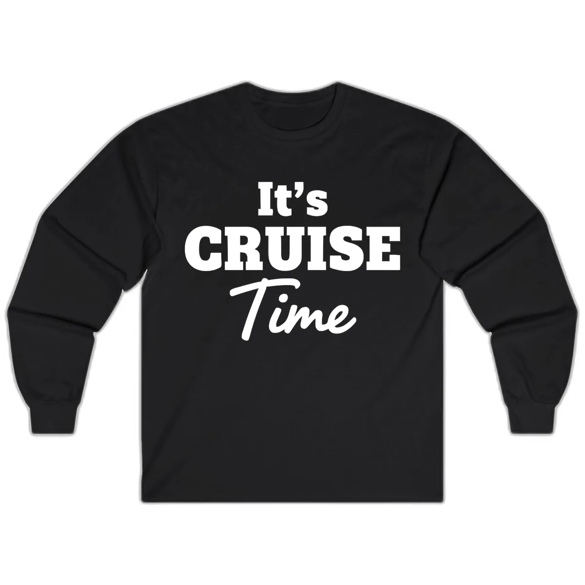 The 'It's Cruise Time' design, with its large white letters, maintains its energetic impact on the long sleeves, ensuring your vacation enthusiasm is visible.