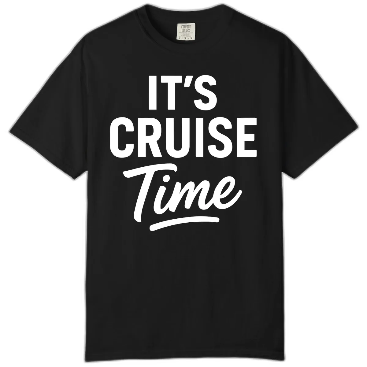 The bold, energetic typography of 'IT'S CRUISE Time' pops nicely on the unique garment-dyed look of Comfort Colors, offering a slightly vintage yet modern aesthetic.