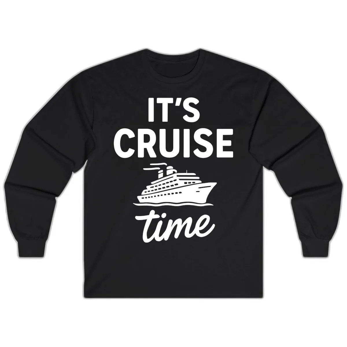 Gear up for your voyage with the "It's Cruise Time" Long Sleeve Shirt! This comfortable tee features the vibrant "IT'S CRUISE time" slogan paired with a classic cruise ship illustration sailing across wavy seas. It’s the perfect blend of style and comfort, ideal for those cooler days at sea or breezy evenings on deck.