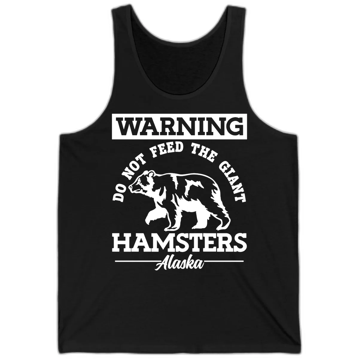 How does the funny 'Do Not Feed The Giant Hamsters Alaska' design look on a tank top?