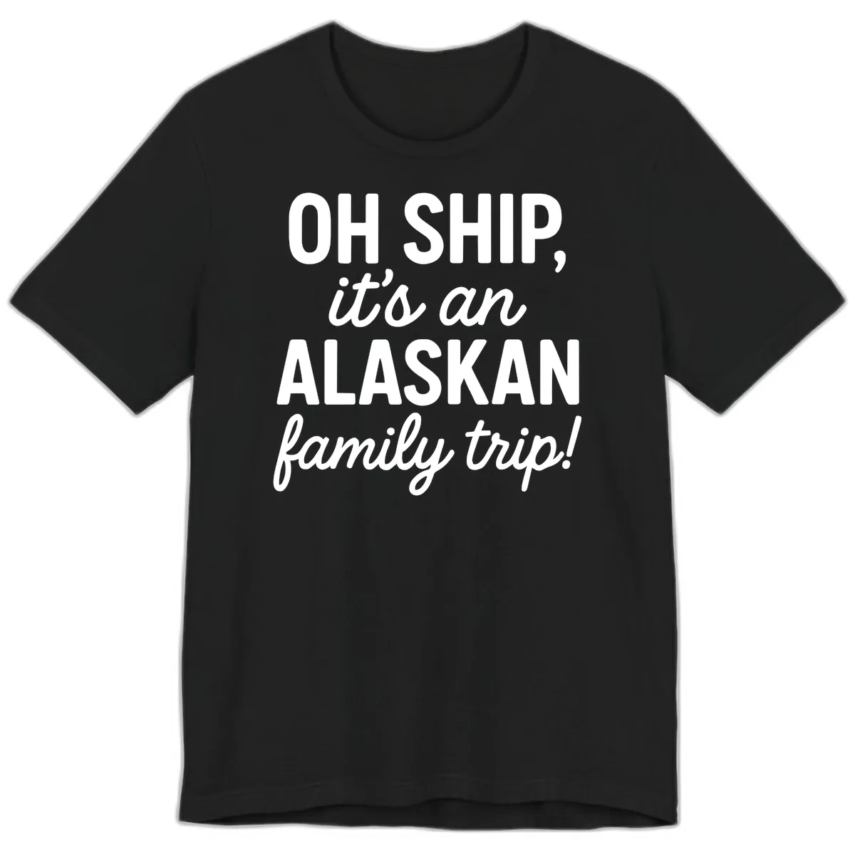 Yes, the bold typography of 'OH SHIP, it's an ALASKAN family trip!' stands out beautifully on the premium t-shirt, ensuring your family's fun cruise theme is clearly communicated.