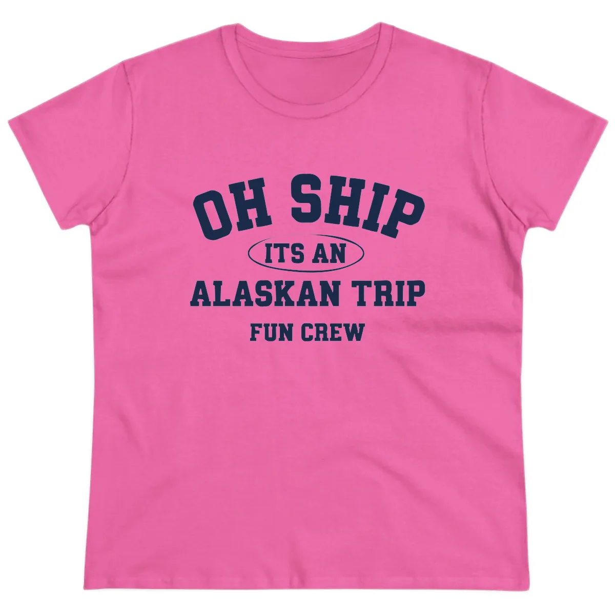 We started Alaska Cruise Tees because we wanted cruise shirts that actually make people laugh. After our first Alaska cruise, we came home with exactly zero shirts worth wearing again. Everything was either a generic port-of-call tee from a gift shop or a boring tourist shirt nobody would be caught dead in back home. So we made our own — fun designs, quality blanks, and shirts you'll actually want to wear long after you're back on dry land. This "Oh Ship" design is exactly the kind of fun, group-ready shirt we wished we had for our own Alaska trips!