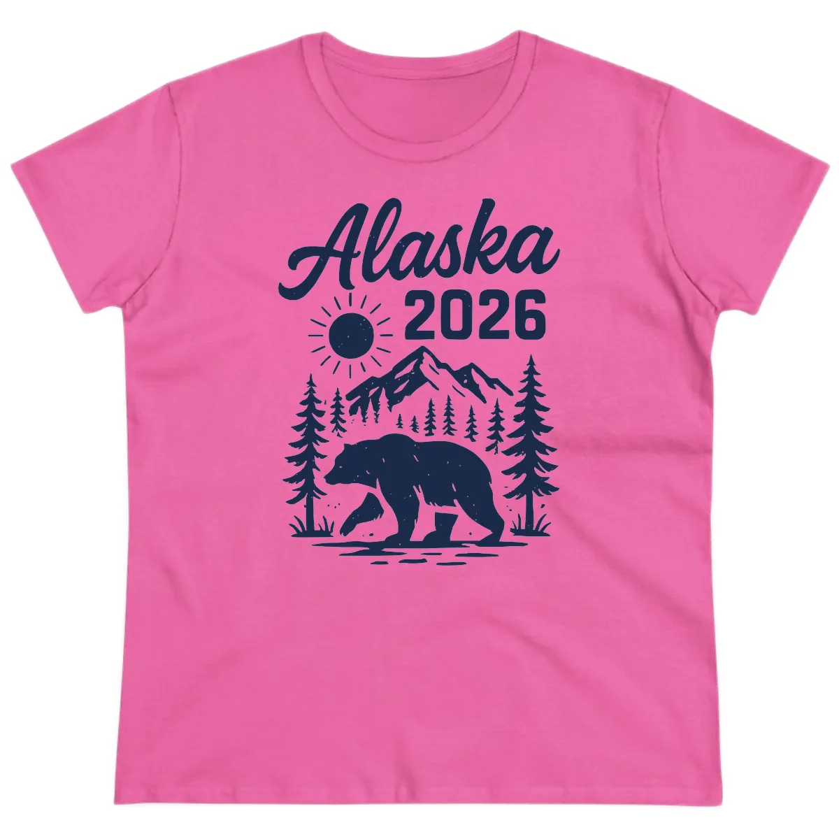 Ladies, get ready to conquer the Last Frontier in style with the "Alaska 2026 Bear Mountain Wilderness" Ladies Tee! This design is a showstopper, featuring a powerful polar bear against a breathtaking backdrop of snow-dusted mountains, evergreen forests, and a radiant sun. It’s the ultimate way to capture the spirit of your 2026 Alaska cruise and showcase your love for adventure. Embrace the wild!