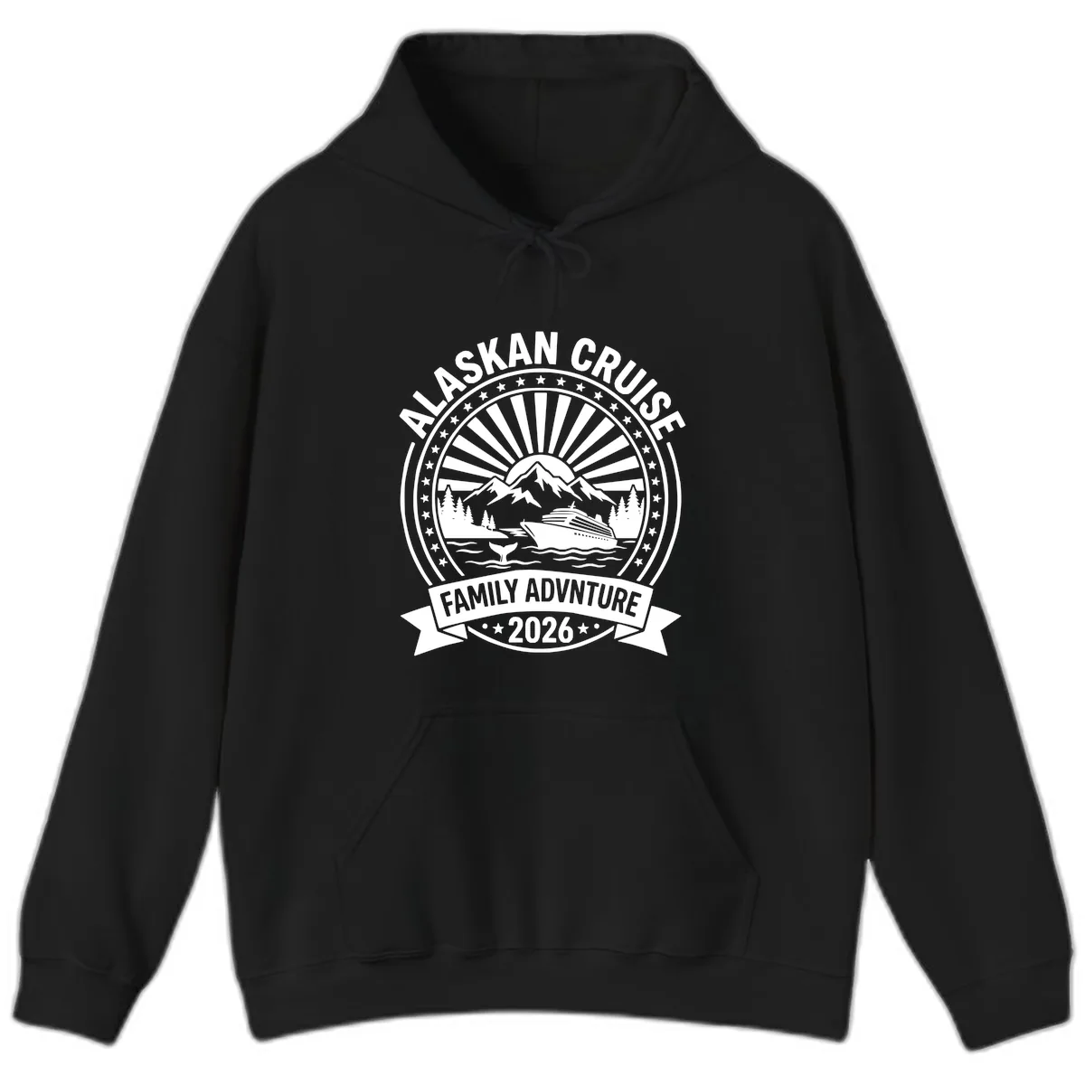 This cozy hoodie provides ultimate warmth with its comfortable fabric and hood, perfect for chilly Alaska cruise days and nights while showcasing your family's 'Family Adventure Badge' design.