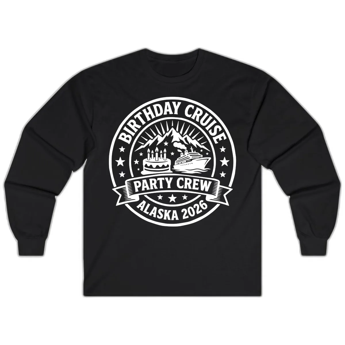 - ✓ "Birthday Cruise Party Crew Alaska 2026" festive wording.