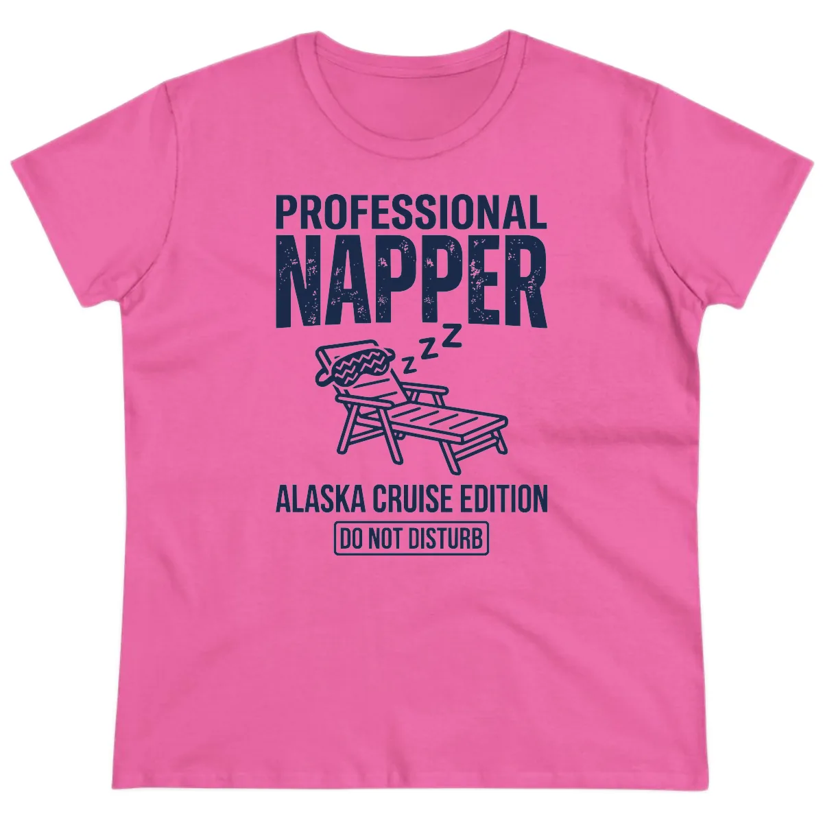 What does the 'Professional Napper Alaska Cruise Edition' design look like on this women's cut shirt?