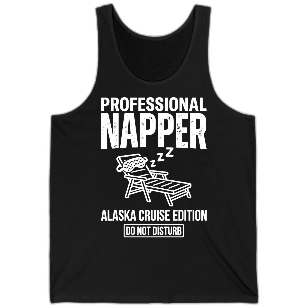 Beat the heat and embrace your vacation spirit with the "Professional Napper Alaska Cruise Edition" Tank Top. This breezy tank is perfect for sunny days onboard or exploring warmer ports. The humorous design, featuring a sleeping figure in a beach chair, clearly communicates your dedication to ultimate relaxation – no interruptions, please!
