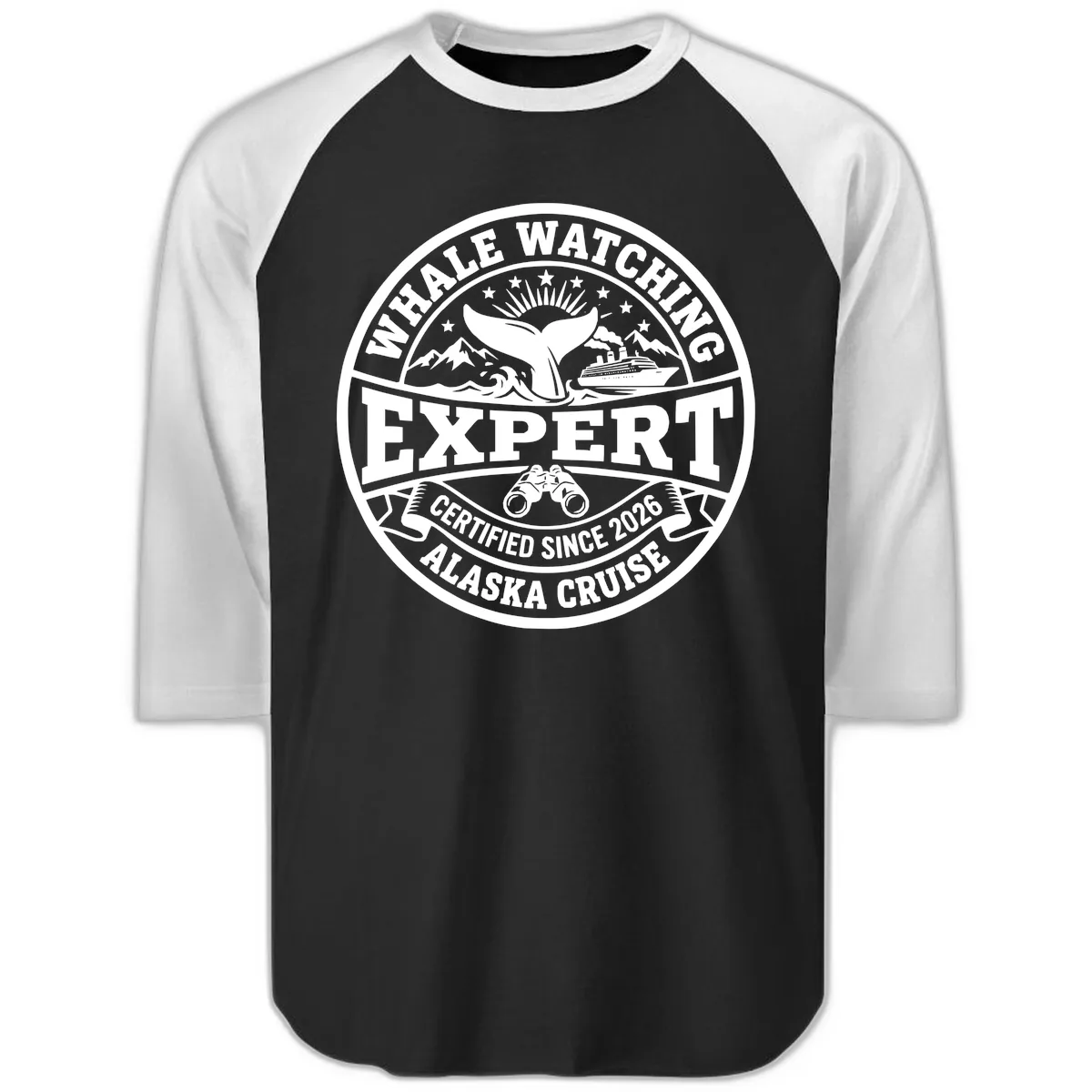 Raglan 3/4 "Whale Watching Expert" Alaska Cruise Baseball Tee