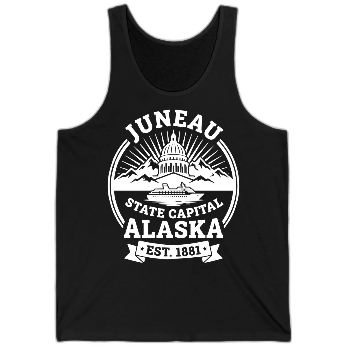 We created Alaska Cruise Tees because we believe your vacation apparel should be as fun as the trip itself! After our Alaska cruise, we wanted shirts that were more than just a souvenir – we wanted something we'd actually wear. This Juneau badge tank captures the spirit of adventure and official charm, making it a unique piece to remember your visit to Alaska's capital.