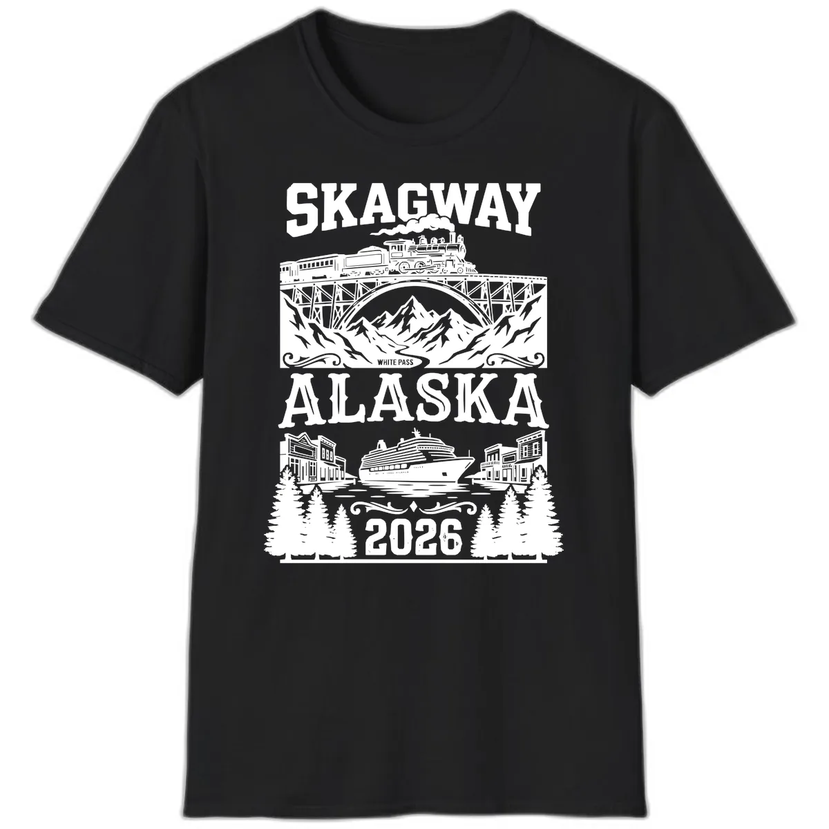 This shirt proudly features '2026' in the design, making it a perfect keepsake for your specific Skagway, Alaska cruise year. Capture the memories of your 2026 journey.