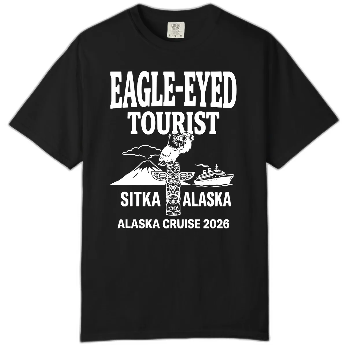 - ✓ Features "EAGLE-EYED TOURIST SITKA ALASKA ALASKA CRUISE 2026" text.