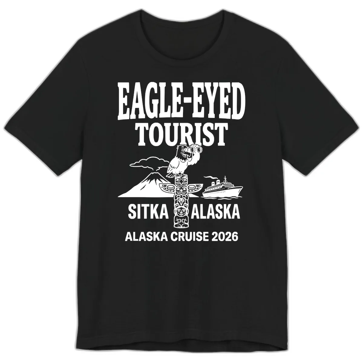 - ✓ Full "EAGLE-EYED TOURIST SITKA ALASKA ALASKA CRUISE 2026" text.