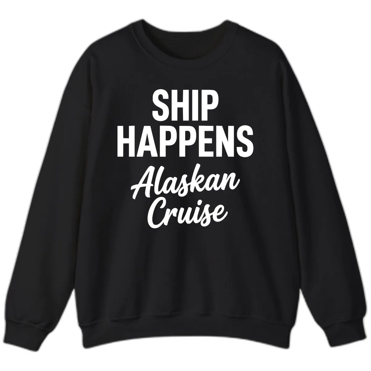 Embrace the majestic chill of Alaska in ultimate comfort and style with our "Ship Happens" Sweatshirt. This cozy crewneck is perfect for those crisp mornings on deck, chilly evenings under the stars, or simply relaxing in the ship's lounge. It’s your go-to piece for staying warm while spreading laughter and cruise cheer.