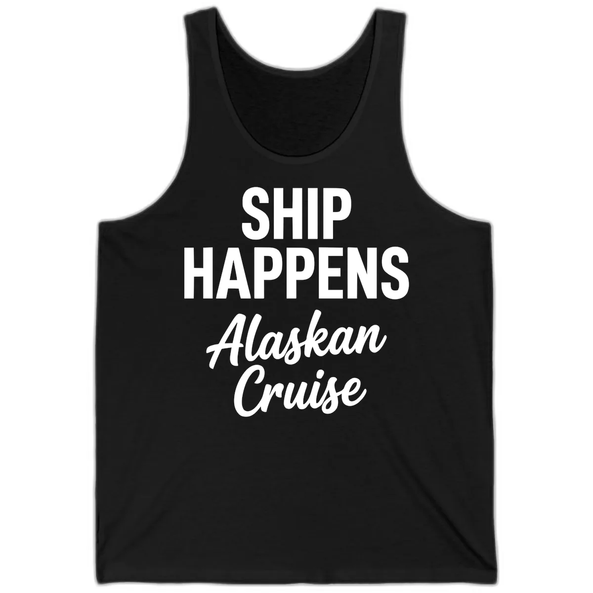 We started Alaska Cruise Tees because we wanted cruise shirts that actually make people laugh. After our first Alaska cruise, we came home with exactly zero shirts worth wearing again. Everything was either a generic port-of-call tee from a gift shop or a boring tourist shirt nobody would be caught dead in back home. So we made our own — fun designs, quality blanks, and shirts you'll actually want to wear long after you're back on dry land. A tank top is essential for those surprisingly warm moments on deck, and our "Ship Happens" design makes it the ultimate vacation essential!