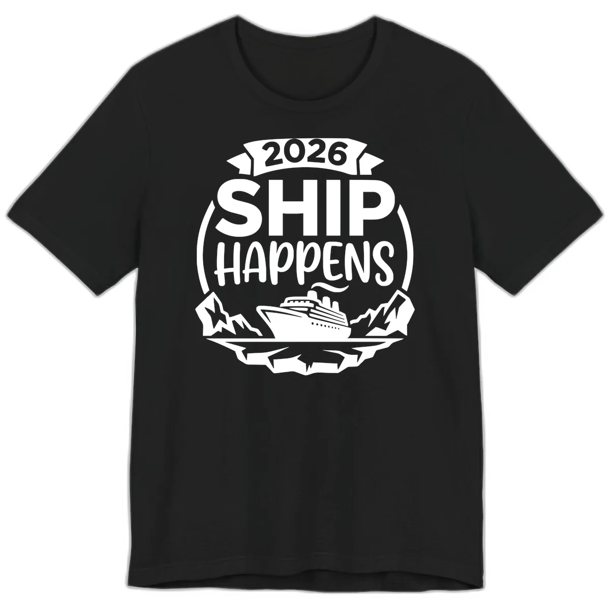Elevate your cruise style with the '2026 Ship Happens Cruise Badge' premium tee! This isn't just any shirt; it's a statement piece for your 2026 Alaska adventure. The eye-catching badge design, complete with a cruise ship sailing past majestic mountains, is printed on a super-soft, premium fabric that feels amazing against your skin. Get ready for compliments and laughs as you embrace the 'Ship Happens' spirit!